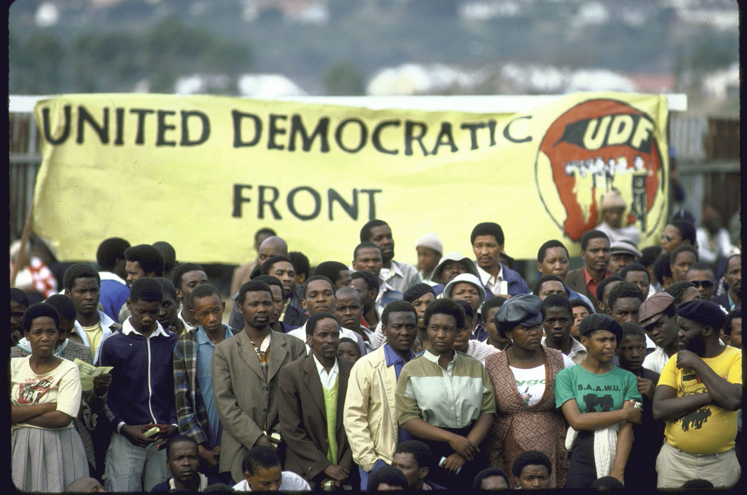 The United Democratic Front (UDF) was founded in 1983 to establish a non-racial, united South Africa in which segregation is abolished and in which society is freed from institutional and systematic racism. The slogan was, ‘UDF unites, Apartheid divides’. There were national patrons like Govan Mbeki, Dr Allan Boesak, President Nelson Mandela, Helen Joseph, Ahmed Kathrada, and many others. The national executive had three Presidents; Archie Gumede, Oscar Mpetha, and Albertina Sisulu. Popo Molefe was the National Secretary, while Terror Lekota was the National Publicity Secretary. There were two vice Presidents, regional Secretaries, and additional executive members.